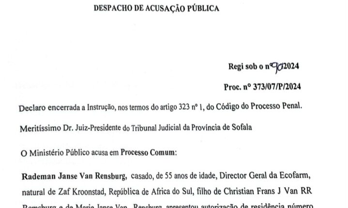 O despacho do Ministério Público baseia-se, em grande medida, nas declarações do primeiro arguido, Rademan Janse Van Rensburg, director-geral da empresa Ecofarm Moçambique.